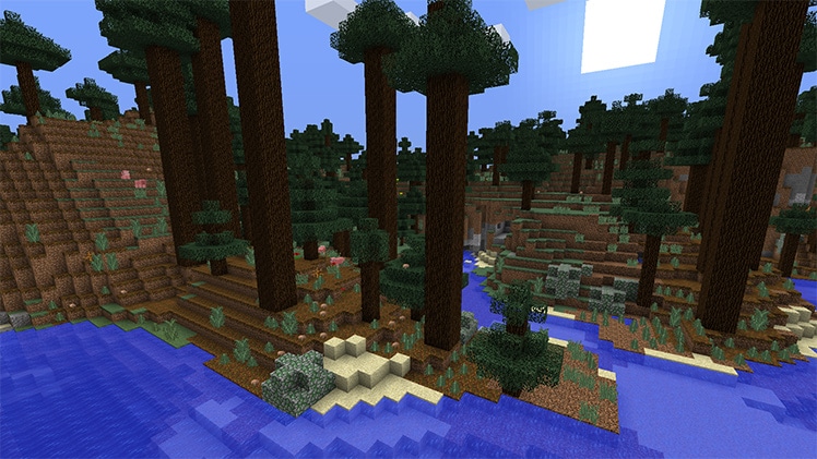 Added in patch 1.7.2, podzol spawns in vast quantities in only one biome - mega taiga. Taiga is itself an unusual word (you can trace it back to Mongolian!) and refers to the vast forests of spiky, cone-bearing trees that cover huge portions of the Earth. Other than the ocean, there's no biome bigger in the real world, but the so-called mega taiga variant found in Minecraft is rather rare. There, podzol replaces grass on the floors of the enormous forests of skyscraping spruce trees, and the lack of grass means there aren't a whole lot of passive mobs around.
