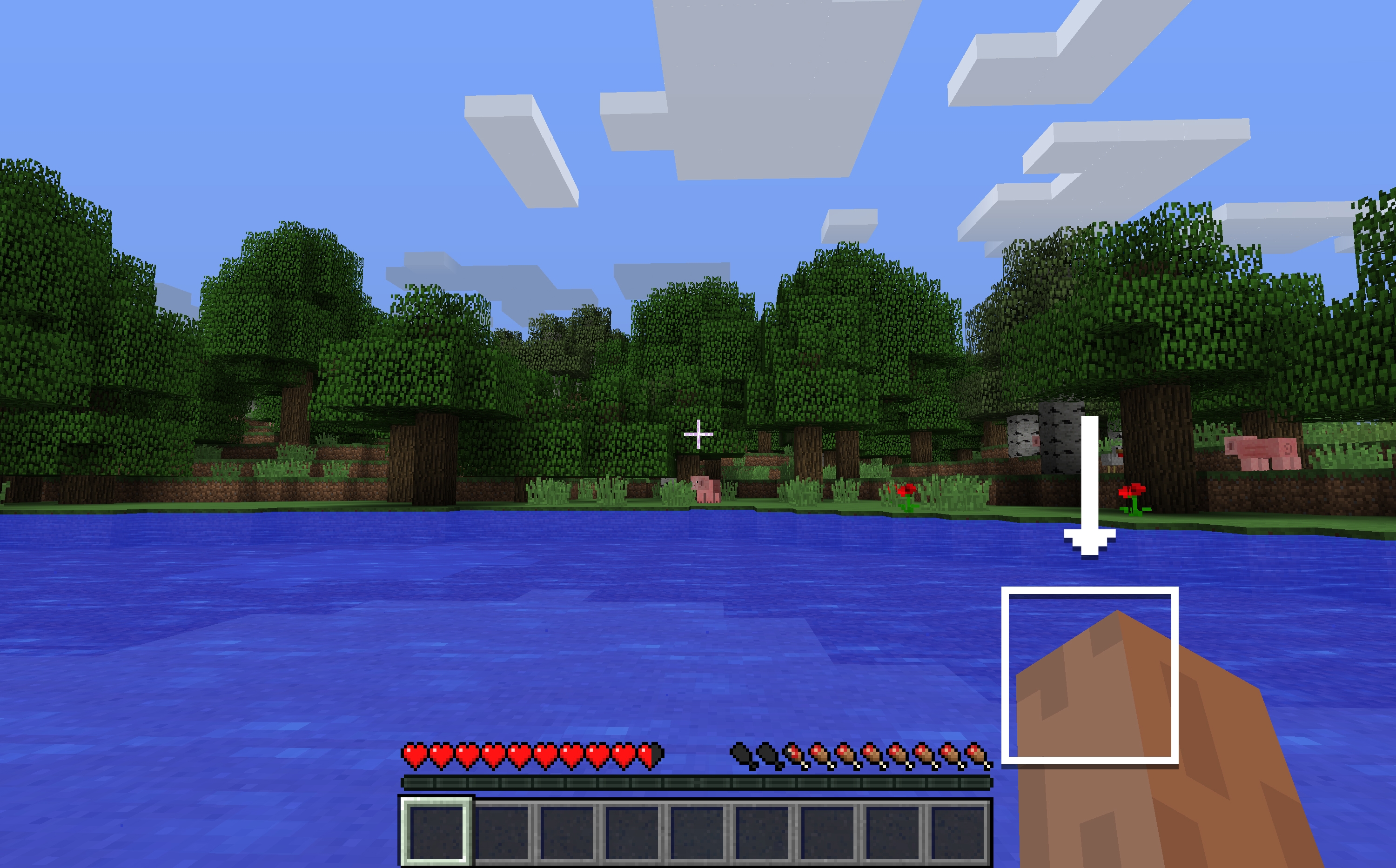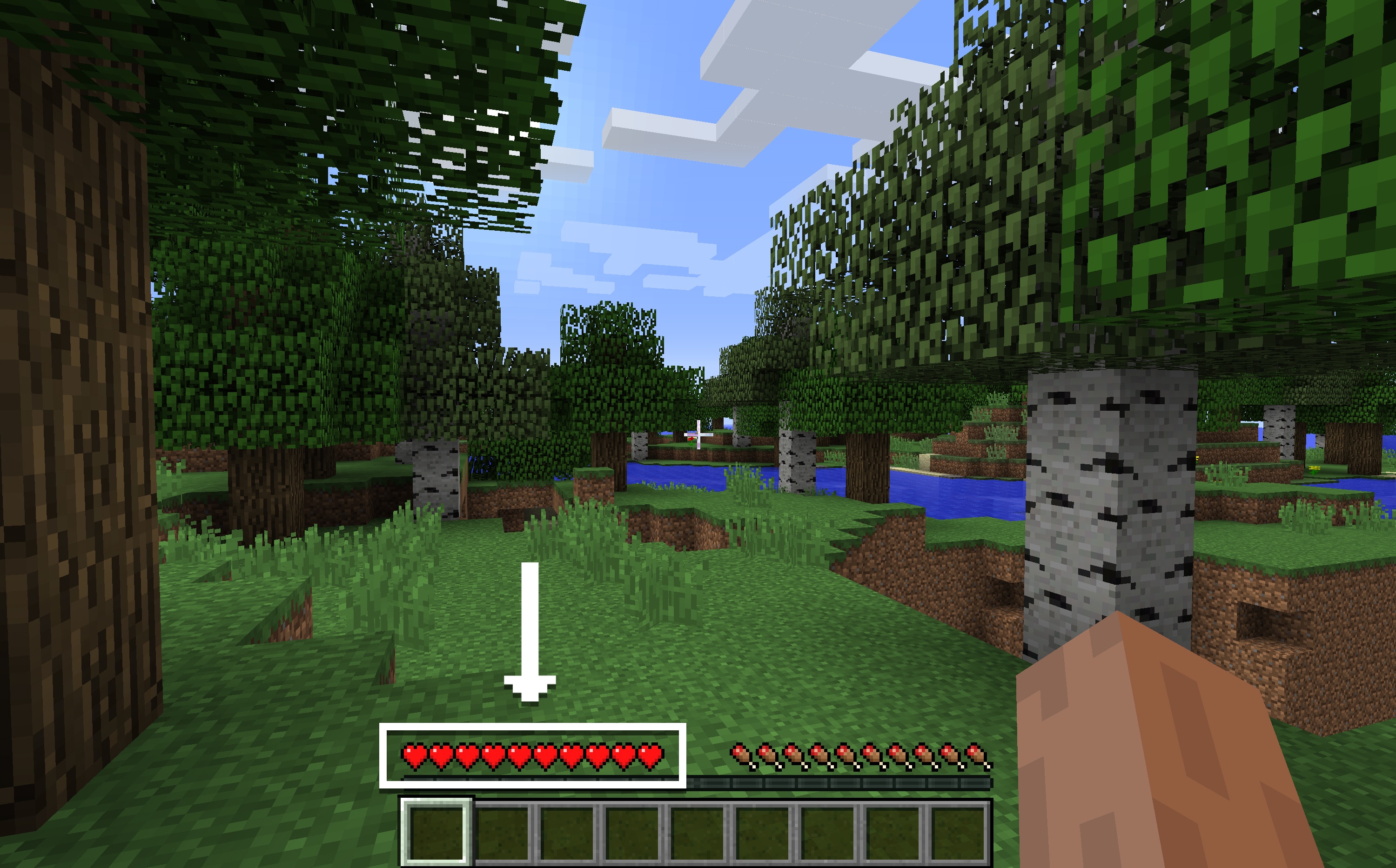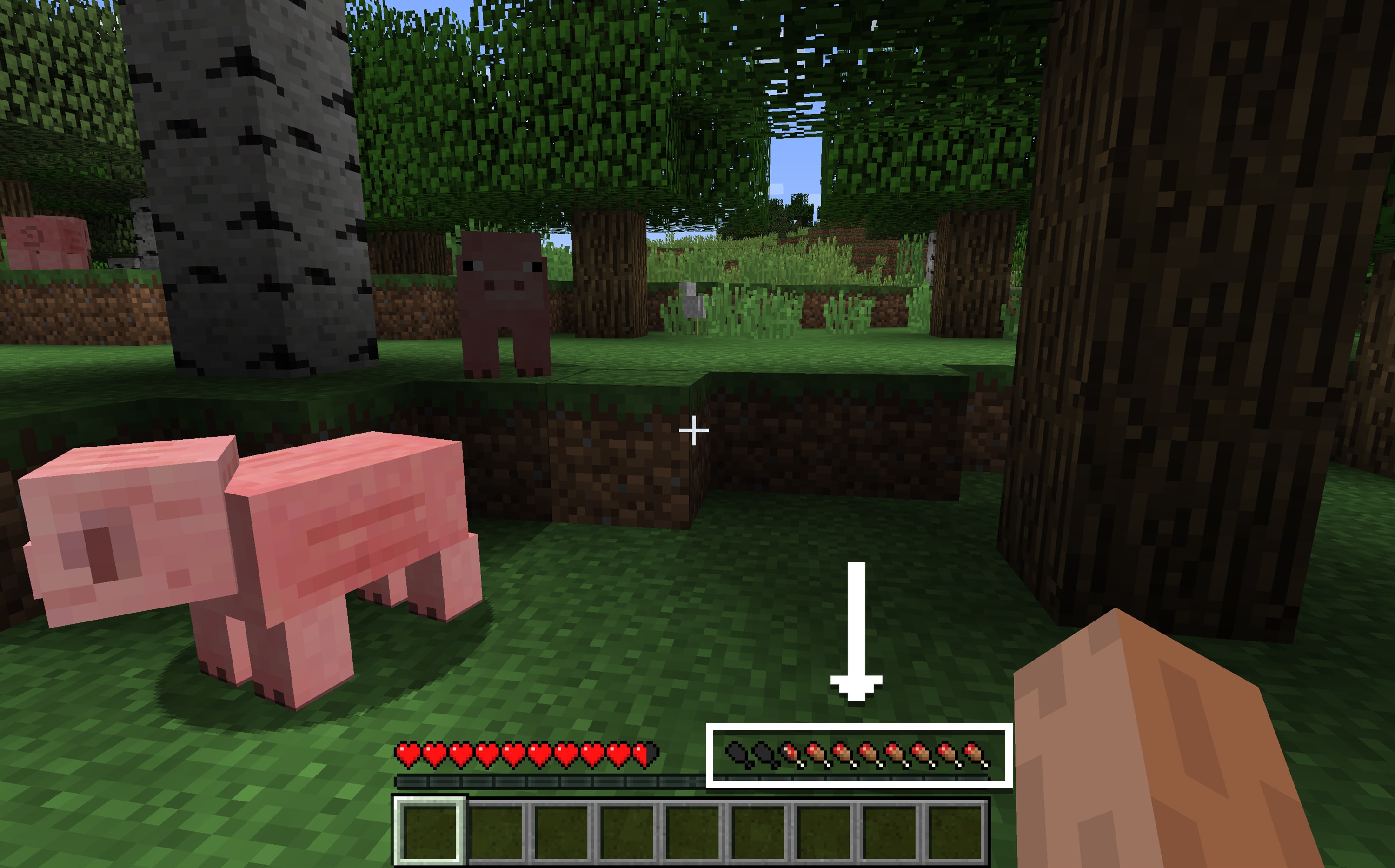 Let’s start by punching some trees! The blocks that make up the tree will break and drop wood. Certain blocks need stronger tools than fists to break, but this is the basics of how Minecraft works – break (or 'mine') a block, pick it up, then place it somewhere else to build something beautiful!